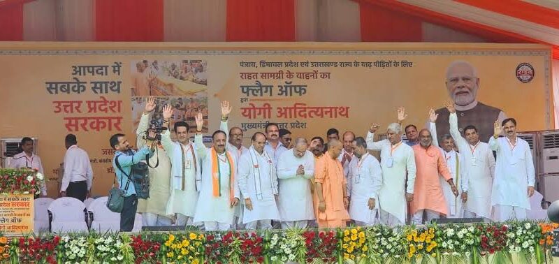 यूपी सीएम योगी ने पंजाब, हिमाचल और उत्तराखंड के बाढ़ पीड़ितों के लिए सहारनपुर से रवाना की राहत सामग्री