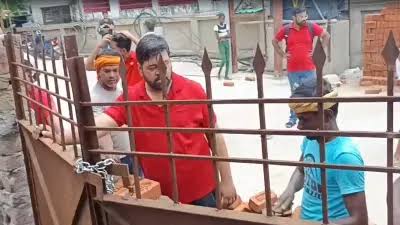 वाराणसी में BJP की पूर्व विधायक के बेटे की दबंगई, परिवार के गेट के सामने खड़ी की बाउंड्री वॉल