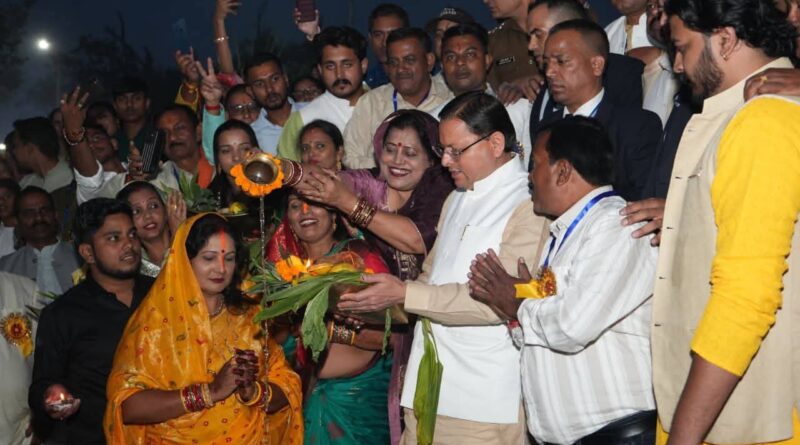 मुख्यमंत्री पुष्कर सिंह धामी ने खटीमा में छठ पूजा महोत्सव में किया प्रतिभाग, सूर्य को दिया अर्घ्य