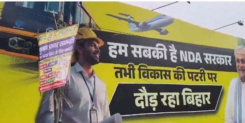चुनावी रणनीति? पहले चरण का मतदान करीब, यह पोस्टर NDA कार्यकर्ताओं में जोश भर रहा। क्या RJD देगा जवाब? बिहार की सियासत पोस्टरों से गरम!