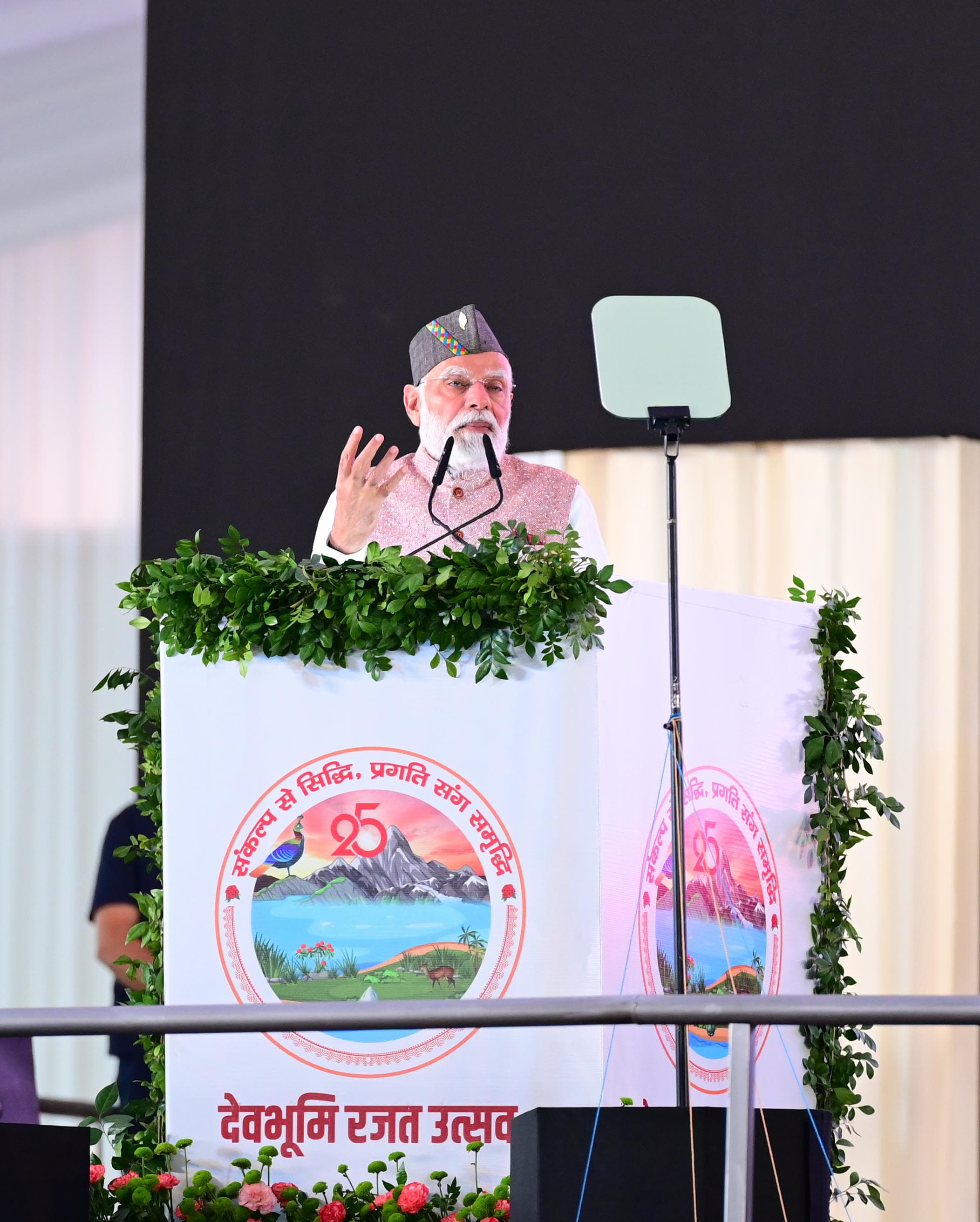 उत्तराखंड राज्य स्थापना दिवस, रजत जयंती पर्व के मुख्य समारोह में लिए रविवार को देहरादून पहुंचे प्रधानमंत्री नरेंद्र मोदी ने 8260 करोड़ रुपए की विकास परियोजनाओं का शिलान्यास – लोकार्पण किया। उन्होने उत्तराखंड की गत 25 वर्षों की उपलब्धियों की सराहना करते हुए, अगले 25 वर्षो के लिए रोडमैप के साथ आगे बढ़ने के लिए प्रेरित किया।