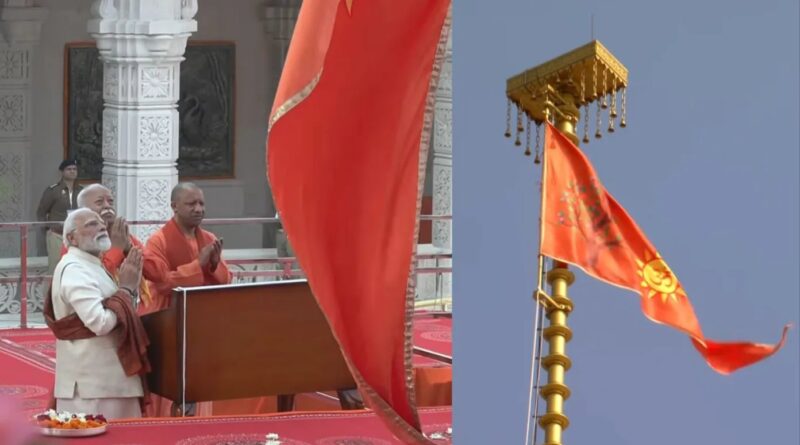 36×54 फीट का यह भगवा ध्वज खादी से बना है, जिस पर ‘जय श्री राम’ और ‘राम राज्य’ अंकित है। 108 फीट ऊंचे स्वर्ण कलश युक्त ध्वजदंड पर फहराया गया यह ध्वज त्याग, धर्मनिष्ठा और सनातन संस्कृति का प्रतीक है। पीएम मोदी ने कहा, “यह धर्म ध्वज दूर से भी राम मंदिर के दर्शन करवाएगा। भारत के कण-कण में राम है, मैकाले वाली मानसिकता से मुक्ति जरूरी। सदियों के घाव भर रहे हैं।” सीएम योगी ने इसे “नए युग का प्रारंभ” बताते हुए कहा, “यह भारतीयों की आस्था-आत्मसम्मान का प्रतीक है। रामराज्य की स्थापना हो रही है।”