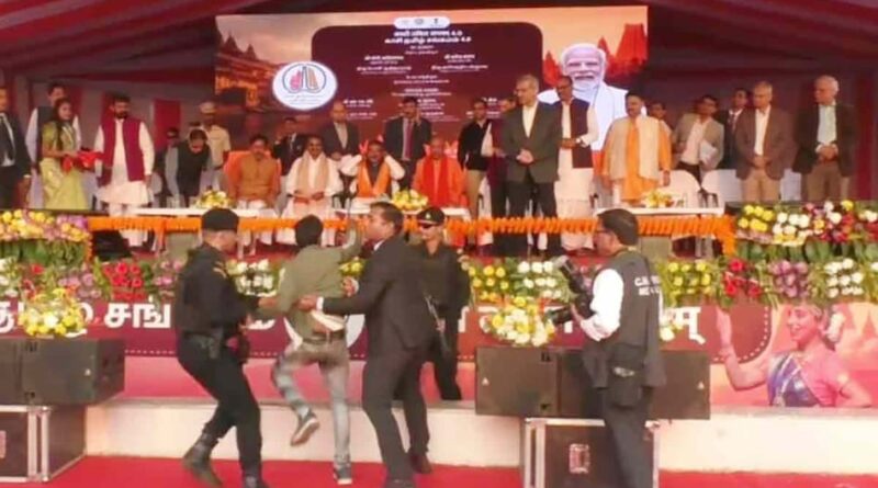 मंगलवार शाम को नमो घाट पर ‘काशी तमिल संगमम’ का भव्य समारोह हो रहा था। सीएम योगी आदित्यनाथ मंच पर मौजूद थे, जहां तमिल संस्कृति और काशी की सांस्कृतिक एकता पर चर्चा हो रही थी। तभी अचानक एक 25 वर्षीय युवक तेजी से मंच की ओर दौड़ पड़ा। वह लगातार बड़बड़ा रहा था और गाली-गलौज कर रहा था। सुरक्षा कमांडो ने फुर्ती दिखाते हुए उसे मंच से ठीक पहले रोक लिया और नीचे खींच लिया।