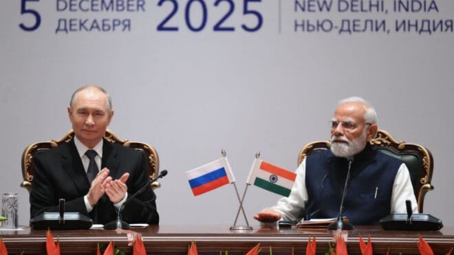 रूसी राष्ट्रपति व्लादिमीर पुतिन की दो दिवसीय भारत यात्रा का समापन आज संयुक्त प्रेस कॉन्फ्रेंस के साथ हुआ, लेकिन रक्षा सौदों पर कोई ठोस ऐलान न होने से सियासी हलचल तेज हो गई। 23वें भारत-रूस शिखर सम्मेलन में 16 समझौते हुए—जिनमें ऊर्जा, व्यापार, स्वास्थ्य, शिक्षा और मुफ्त ई-टूरिस्ट वीजा शामिल हैं—लेकिन S-400, Su-57 फाइटर जेट या ब्रह्मोस जैसे डिफेंस डील्स का नामोनिशान नहीं। एक्सपर्ट्स का मानना है कि यह भारत की ‘स्ट्रैटेजिक ऑटोनॉमी’ की रणनीति का हिस्सा है, लेकिन अमेरिकी दबाव ने इसे प्रभावित किया।