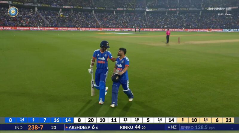 LIVE: भारत ने न्यूजीलैंड को दिया 239 रनों का लक्ष्य! अभिषेक शर्मा की तूफानी 84 और रिंकू सिंह की धमाकेदार 44 – IND 238/7