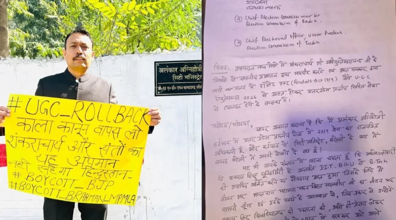उत्तर प्रदेश के बरेली जिले के सिटी मजिस्ट्रेट अलंकार अग्निहोत्री ने अपने पद से इस्तीफा दे दिया है। यह इस्तीफा मुख्य रूप से दो मुद्दों पर आधारित है – प्रयागराज के माघ मेले में ज्योर्तिमठ के शंकराचार्य स्वामी अविमुक्तेश्वरानंद सरस्वती के ब्राह्मण बटुक शिष्यों के साथ कथित मारपीट और अपमान की घटना, तथा यूजीसी (UGC) के नए नियमों (रेगुलेशन 2026) को “काला कानून” बताते हुए उनका विरोध।