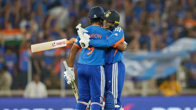 भारत ने पावरप्ले में मजबूत शुरुआत की, फिर संजू-ईशान की साझेदारी ने 200+ का स्कोर सुनिश्चित किया। कुल मिलाकर रन-रेट 12.75 रहा। अब न्यूजीलैंड को 256 रनों का लक्ष्य चेज करना है – क्या ब्लैक कैप्स यह बड़ा लक्ष्य हासिल कर पाएंगे या भारत लगातार तीसरा T20 विश्व कप जीतेगा?