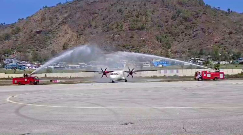 उत्तराखंड के सीमांत क्षेत्रों को राजधानी से जोड़ने की दिशा में आज एक बड़ा कदम उठाया गया है। देहरादून से उड़ा यह विमान जब पिथौरागढ़ के नैनीसैनी हवाई अड्डे पर उतरा, तो उसका भव्य स्वागत ‘वाटर कैनन सैल्यूट’ के साथ किया गया।