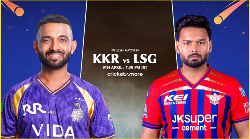 आईपीएल 2026 में आज (9 अप्रैल) कोलकाता के ऐतिहासिक ईडन गार्डन्स मैदान पर कोलकाता नाइट राइडर्स (KKR) और लखनऊ सुपर जायंट्स (LSG) के बीच रोमांचक मुकाबला होने जा रहा है।