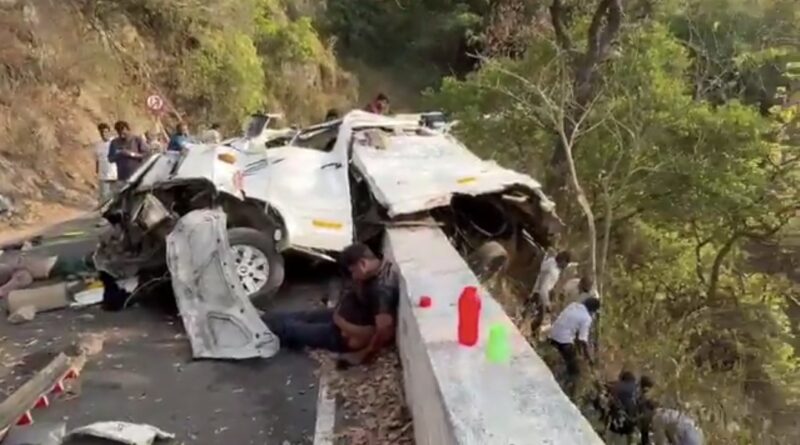 वैन खाई में कई बार लुढ़की, जिससे वह पूरी तरह पिचक गई।
