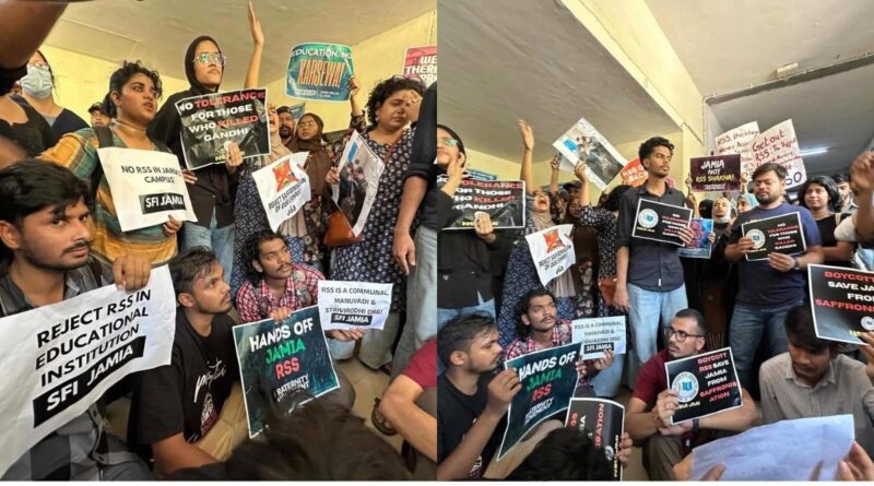 जामिया मिलिया इस्लामिया में RSS कार्यक्रम पर भारी विरोध: छात्रों ने लगाए ‘RSS गो बैक’ और ‘जामिया हमारी है, शाखा नहीं’ के नारे