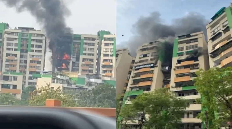 सोसाइटी की 13 मंजिला इमारत में कई परिवार रहते हैं। आग लगने के बाद अफरा-तफरी का माहौल बन गया।